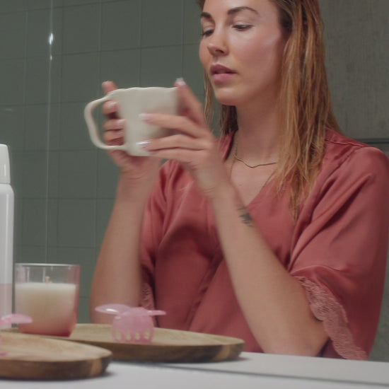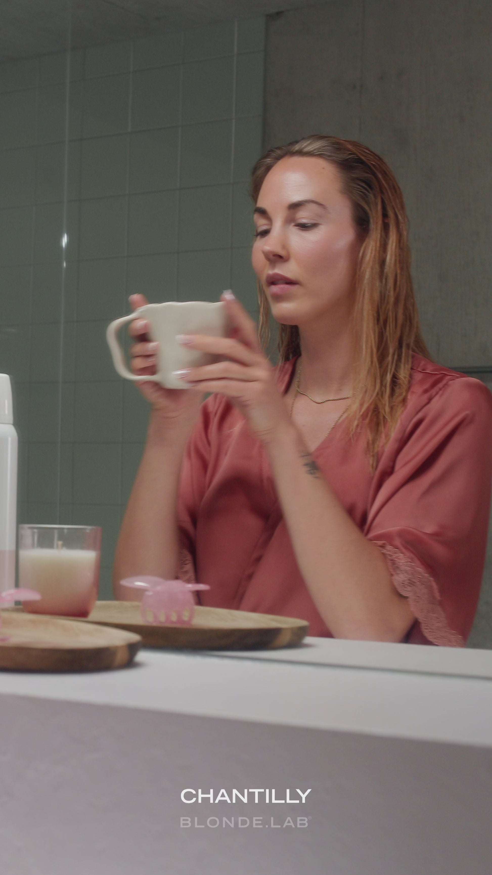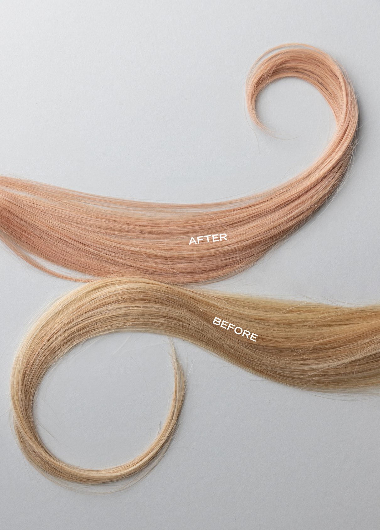 Light weight 3-in-1 mousse which protects from heat and moisturizes the hair with a blush / pale peach tone.